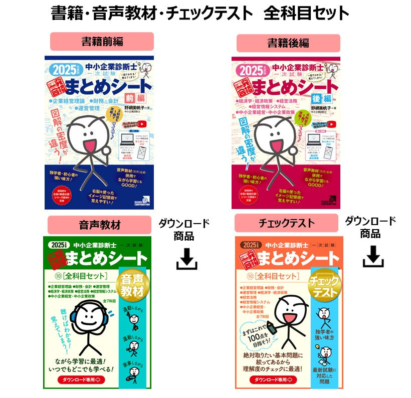 【書籍・音声教材・チェックテスト(後編セット)】2025年度版 中小企業診断士1次試験 一発合格まとめシート(経済学・経済政策、経営法務、経営情報システム、中小企業経営・政策)